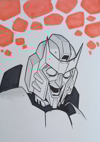 A5 (14.9 x 21cm) hand-drawn inks over pencils with orange and grey tone elements on Bristol Board. One of a kind!