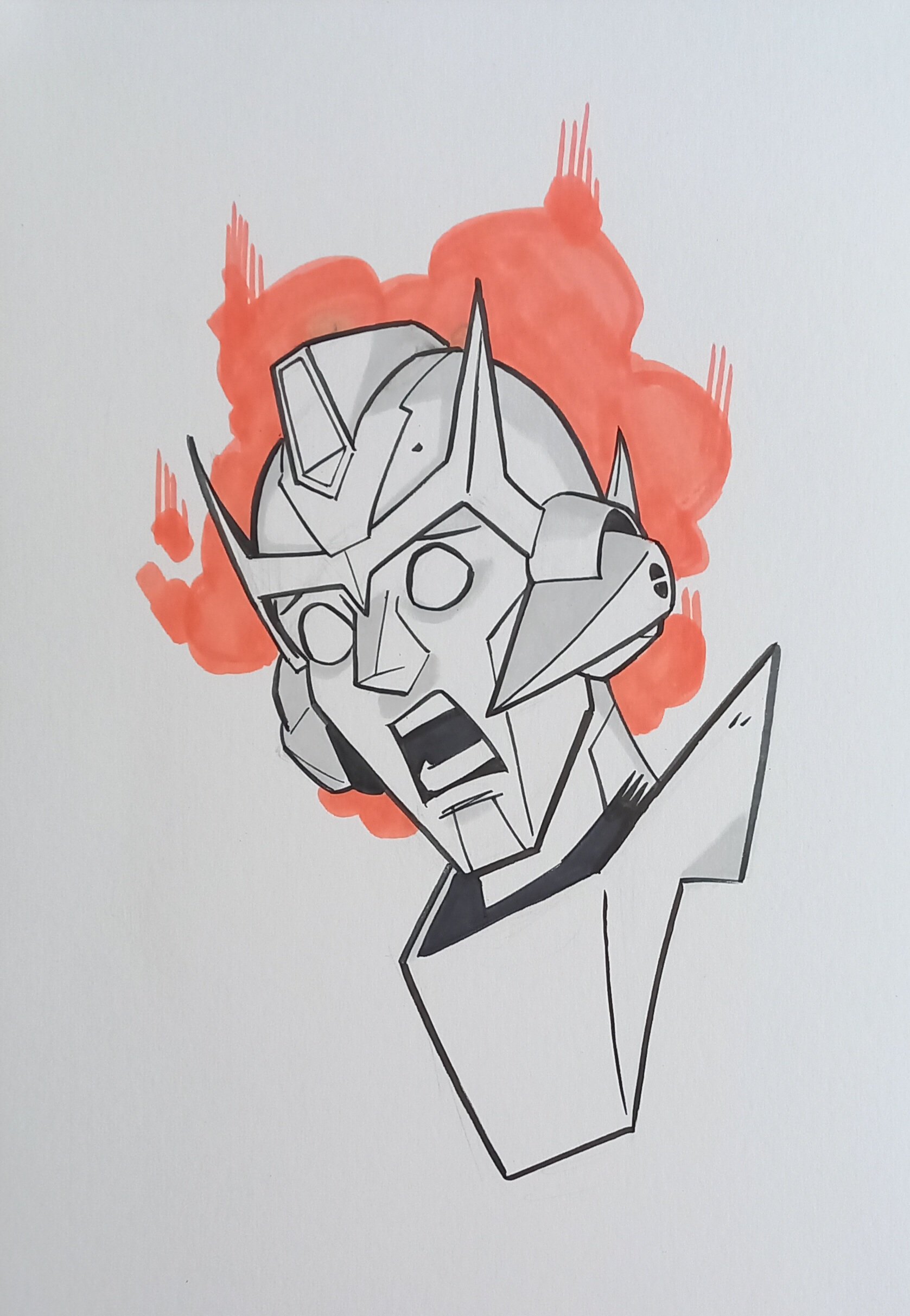 A5 (14.9 x 21cm) hand-drawn inks over pencils with orange and grey tone elements on Bristol Board. One of a kind!