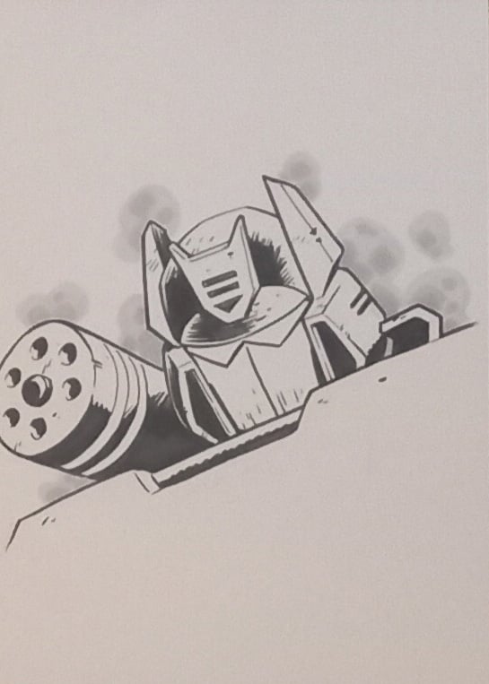 A5 (14.9 x 21cm) hand-drawn inks over pencils with orange and grey tone elements on Bristol Board. One of a kind!